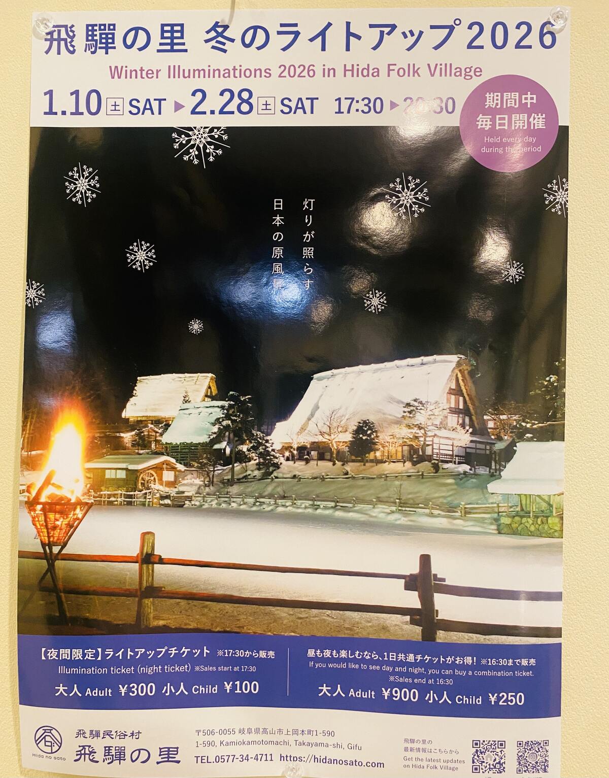 飛騨の里では、1月10日より冬のライトアップが始まります。