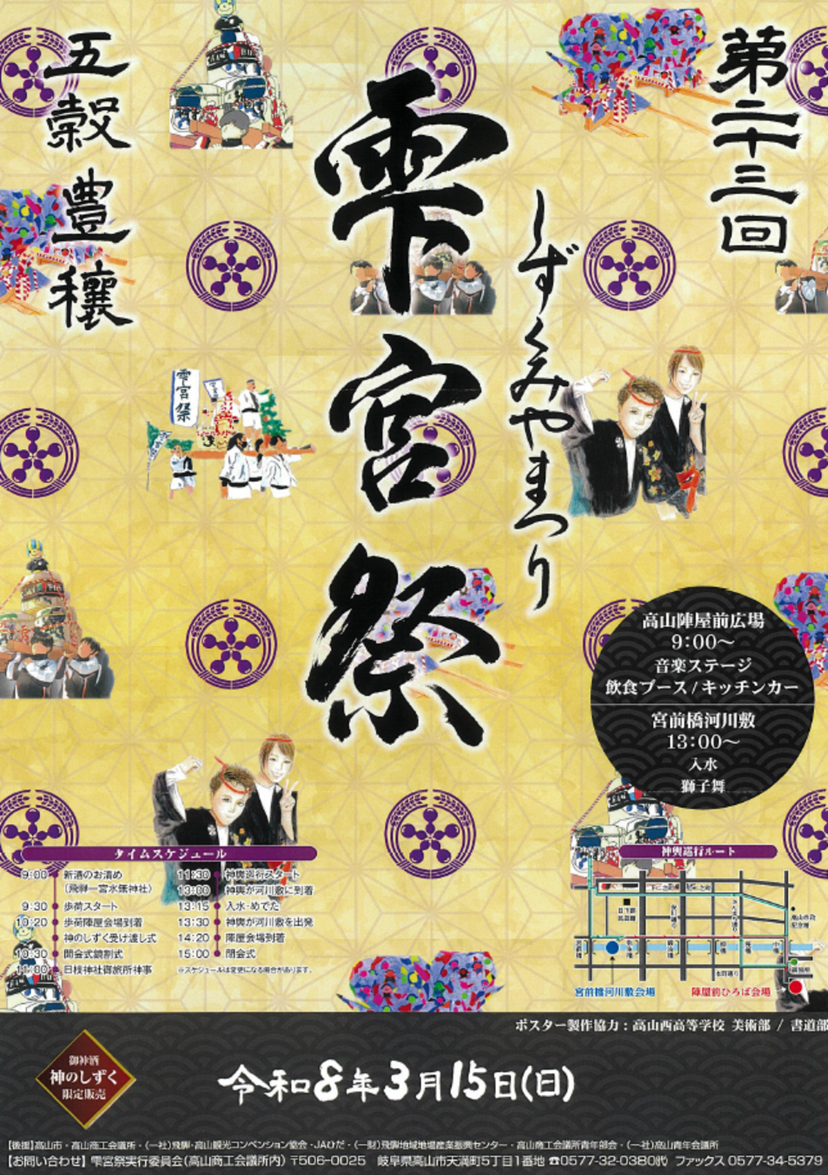 雫宮祭(しずくみやまつり)は、毎年3月15日に行われる高山の伝統行事です。